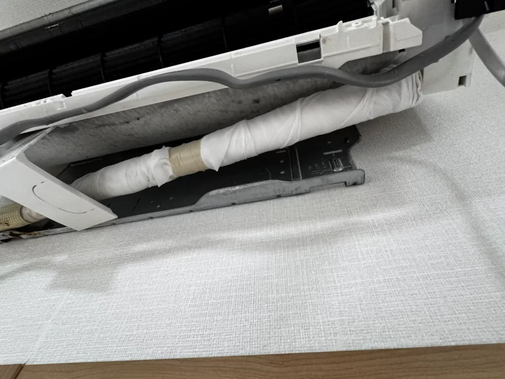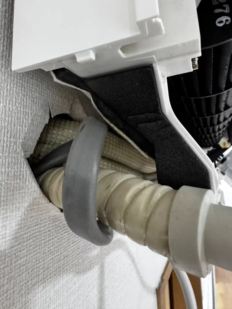 エアコンの水漏れは「ホースの詰まり」や「部品の破損」だけではなく、設置時の施工不良や外気の侵入 が原因になるケースもあります。