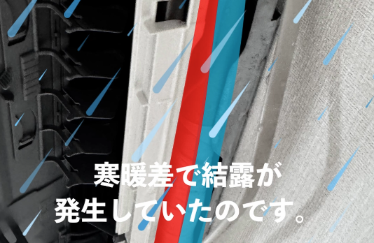 結露は小さな水滴から始まりますが、24時間フル稼働という過酷な条件も重なり、まるで「大雨」のような水漏れに発展していたのです。